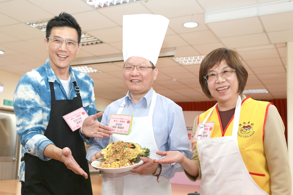 (財政部長蘇建榮(中)、彰銀董座凌忠嫄(右)、藝人蔣偉文(左)同場秀廚藝,分享創意年菜。)
