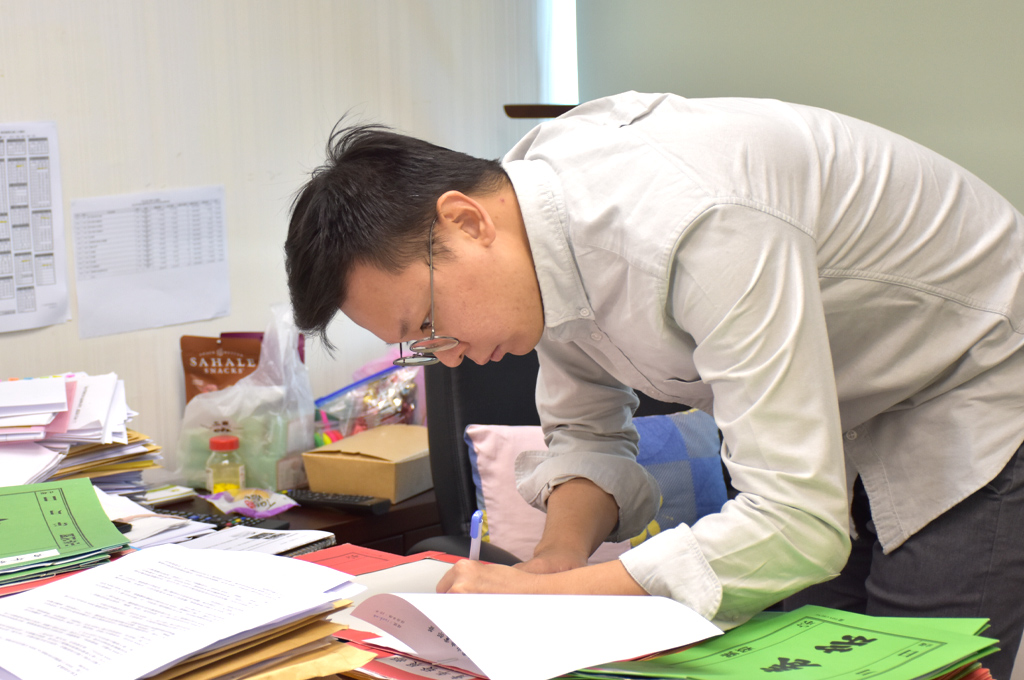 採訪當天踏入林飛帆的辦公室,目擊他坐在會客區的沙發上,便當才吃幾口,見到我們進門,又急忙將便當盒蓋上;等待架設器材的時間,林飛帆急著簽那座堆得跟小山一樣高的公文!閱覽、簽名、蓋章,交代後續處理事宜,他的份內工作忙個沒停,不僅壓縮了專訪的時間,整盒便當也默默在他辦公桌上涼掉,淹沒在公文海中…。