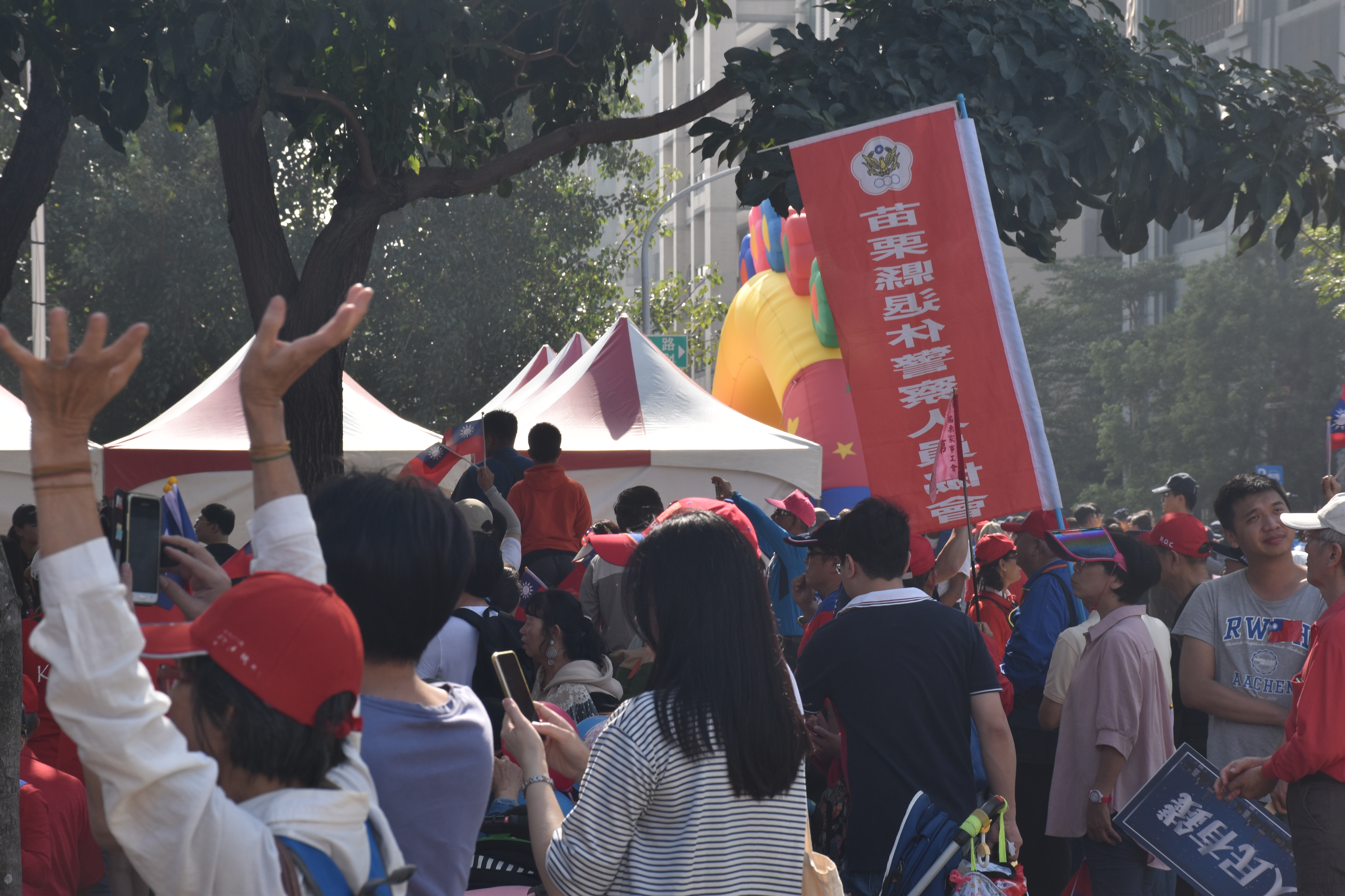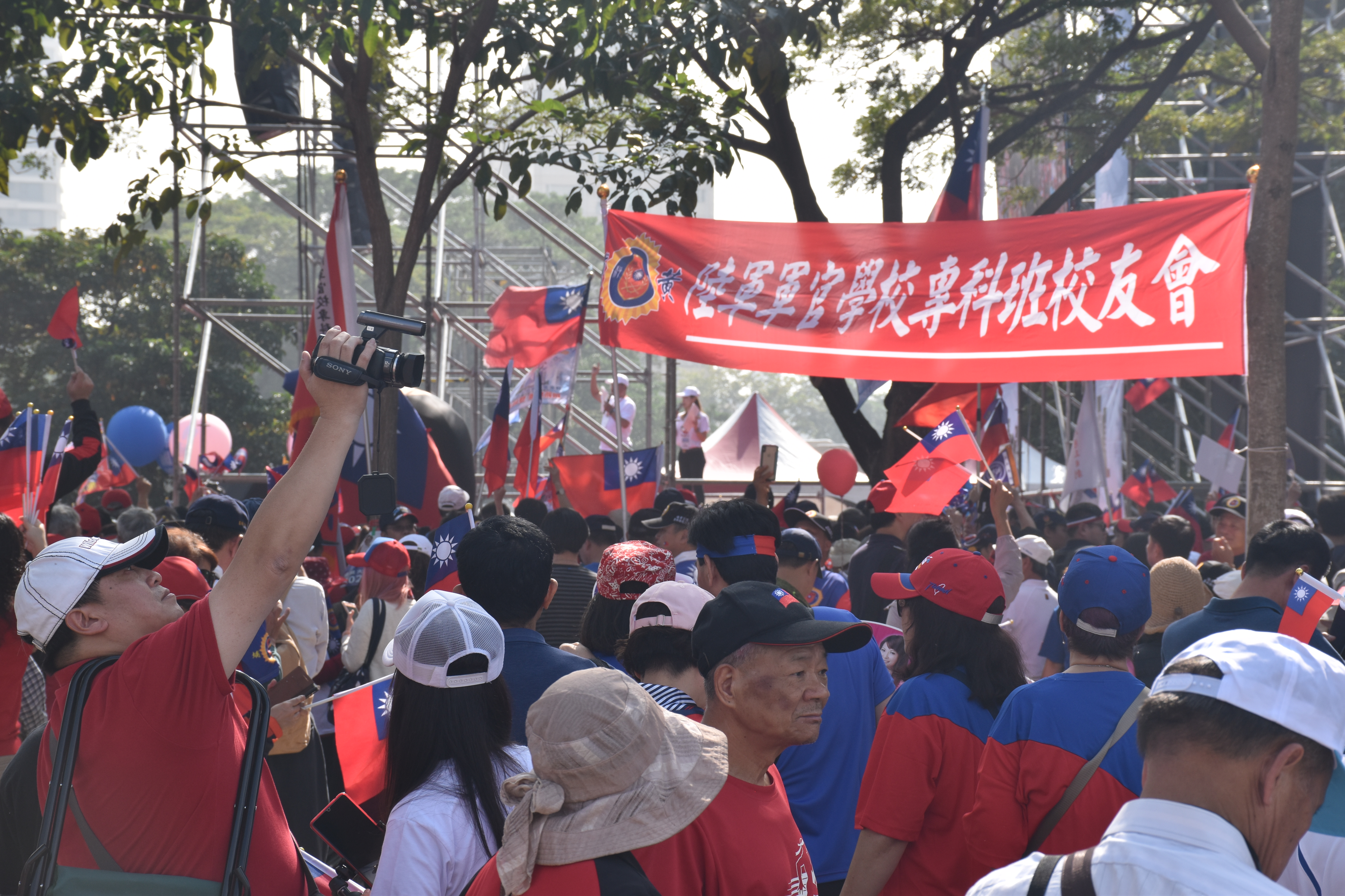 國民黨總統候選人韓國瑜號召的挺韓大遊行,自12:00開始就在高雄凹子底公園聚集大量人潮。現場可見主要由退休軍警組成,還有自苗栗、基隆等外縣市包遊覽車來的「旅行團」,揮舞青天白日旗、手拿批判蔡英文無能、下架民進黨等標語,主持人也激動表示「大家看看螢幕上的人潮,現場人數已經超過30萬了!」