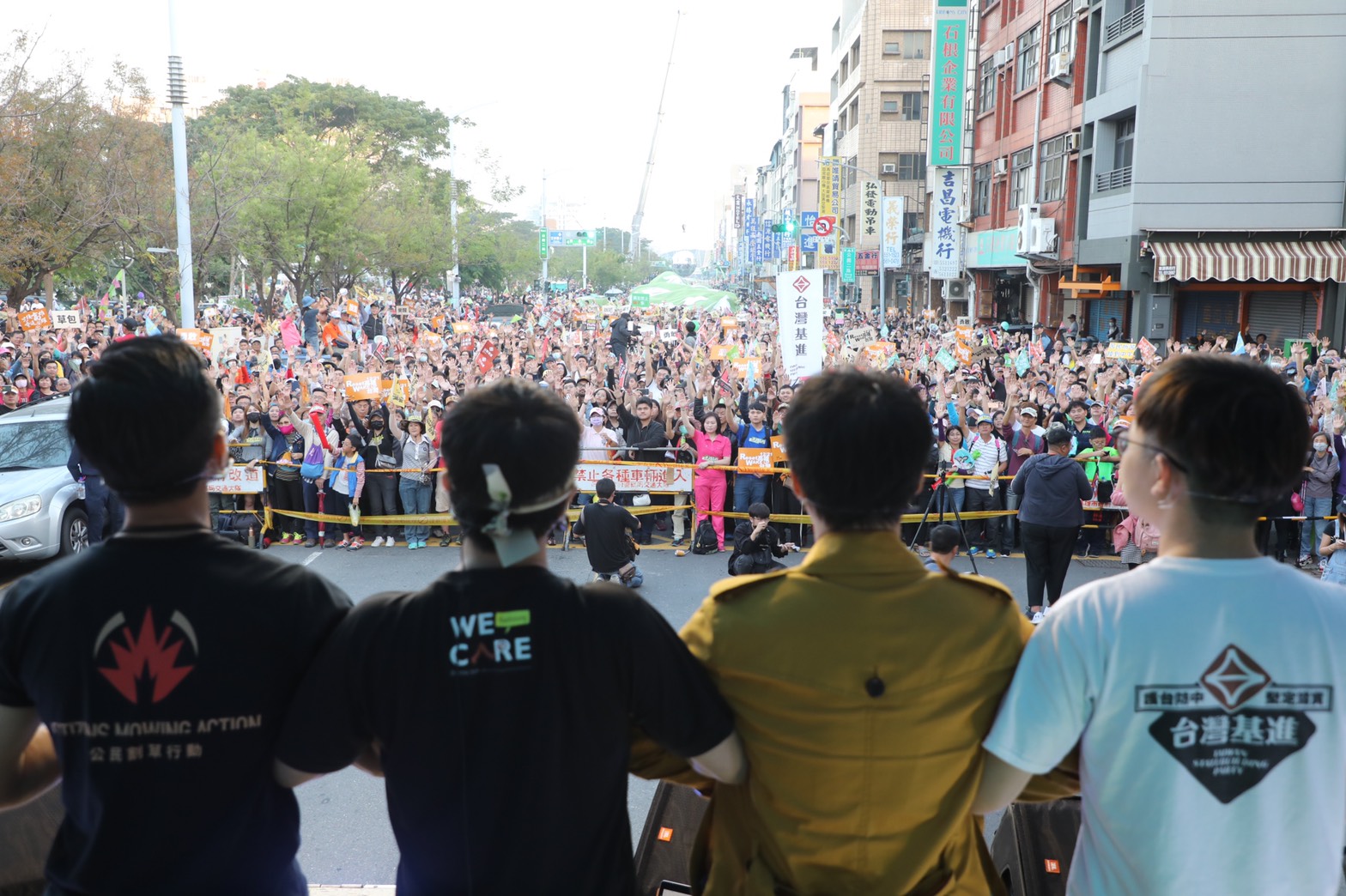 罷韓四君子( Wecare高雄發言人尹立、公民割草行動發言人李醫師、台灣基進黨新聞輿情部副主任張博洋及前高雄81氣爆自救會會長陳冠榮)在16點45分時,上台宣讀宣言。