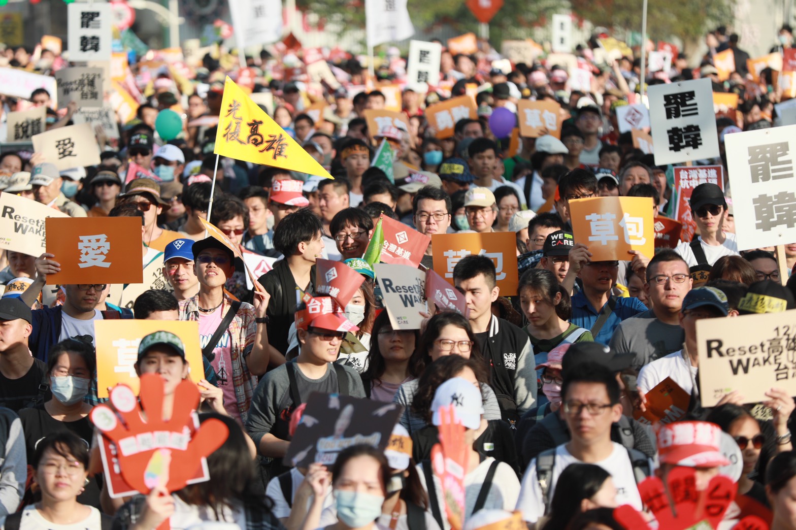 「光復高雄,保衛台灣。」罷韓遊行參與者於14點開始出發,沿著五福一、二、三、四路、公園二路的方向一路前進,途中民眾不時高呼口號展現熱情。