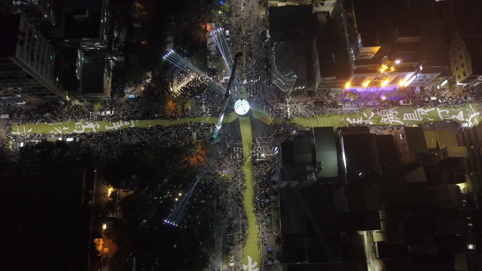 活動尾聲夜幕低垂,在交響樂團演奏下,民眾席地而坐,沉澱今日遊行的疲憊。主辦單位特別升起直徑約5米、全台最大的「鏡球」,加上發光燈具助陣,綻放出炫麗燈光效果;鏡球四周也掛上美麗島事件四十年、勿忘前人珍惜民主、撐香港守護主權和光復高雄保衛台灣的誓言布旗,宛如民主聖誕樹。