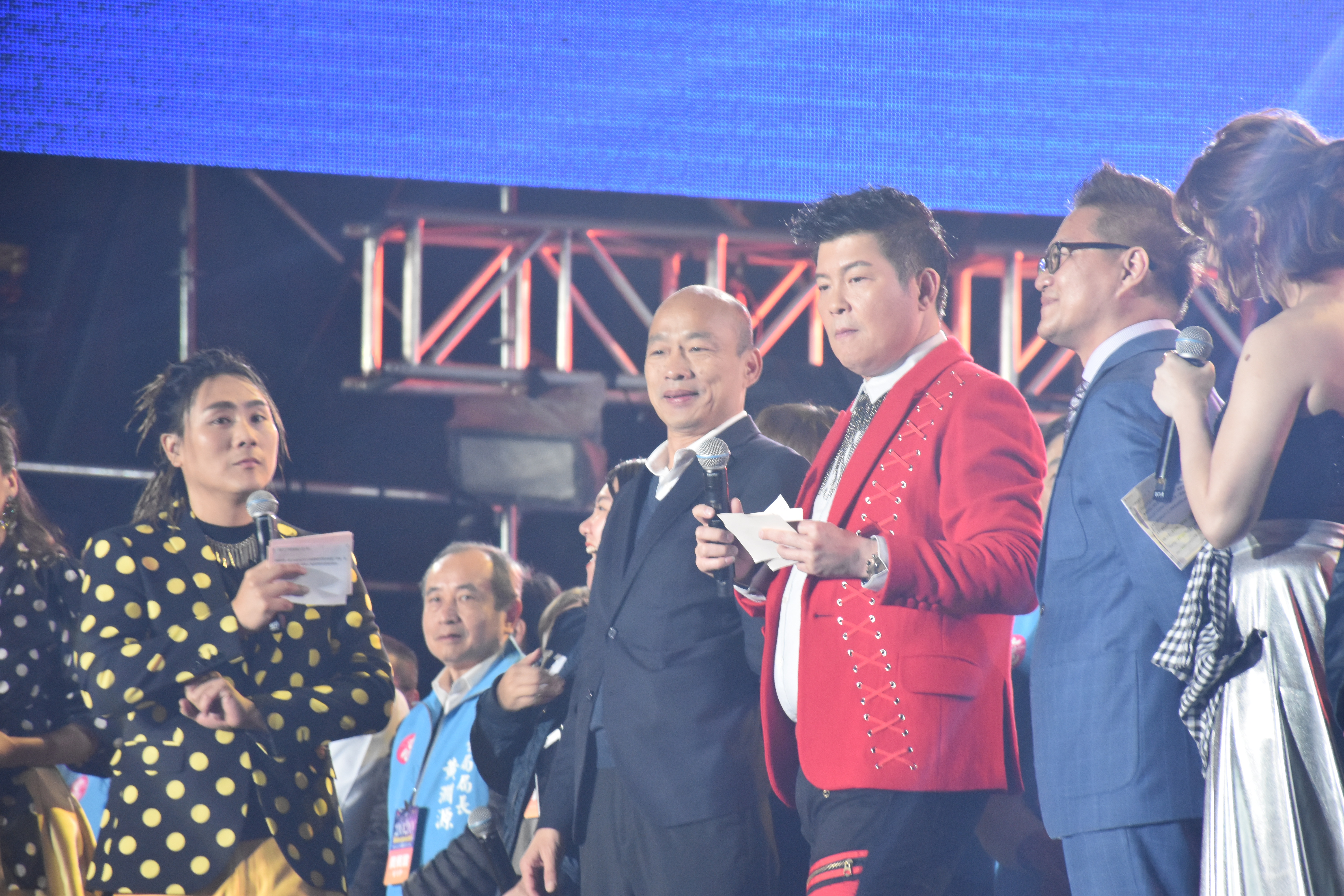 高雄市市長、國民黨總統參選人韓國瑜31日午夜來到高雄夢時代,與高雄市民一起迎接2020年的到來。這次高雄跨年的亮點,是由150台無人機組成的機隊,在空中排列出倒數數字;在2020年的第一刻,無人機隊則排列出LOVE,似乎呼應了韓國瑜的「愛情產業鏈」。