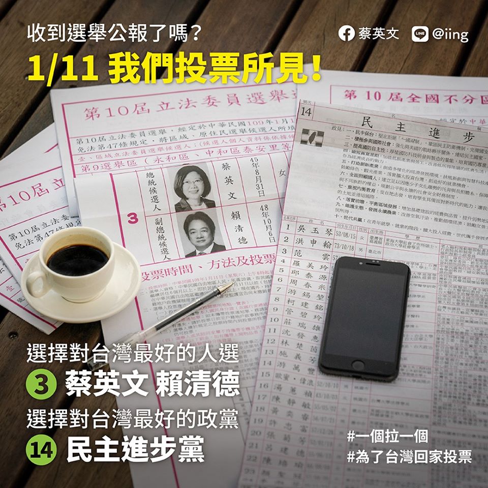 距離投票的日子只剩下6天,蔡英文透過臉書提醒選民收到選舉公報了嗎?