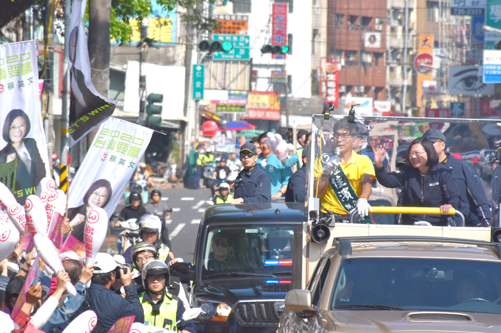 民進黨衝選前黃金週,兵分多路於全台啟動掃街。蔡英文本週將從台灣尾拼到台灣頭。