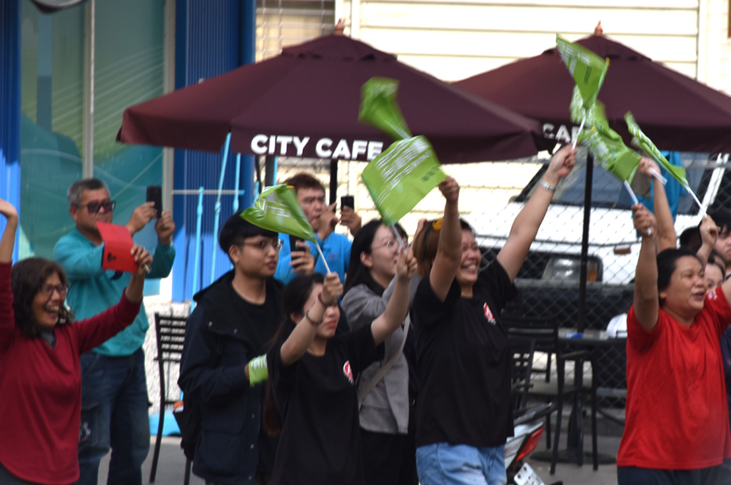 所到之處,民眾夾道歡迎。搖旗吶喊凍蒜,也比「ok」手勢,象徵蔡英文的競選號碼3號,鄉親更是紛紛拿起手機拍下難得時刻。