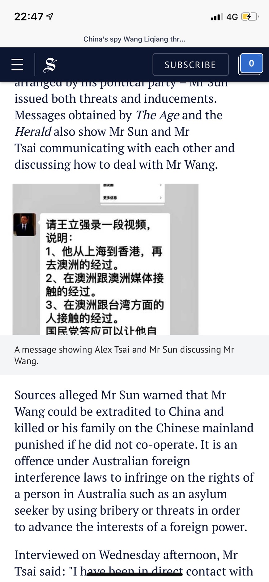 報導共諜王立強案的澳洲媒體,今晚揭露國民黨選前奧步,詳細報導蔡正元偕孫姓商人逼誘王立強製作影片翻供,並反咬受民進黨蔡英文方面賄賂指使,才有投誠尋求政治庇護等舉動。