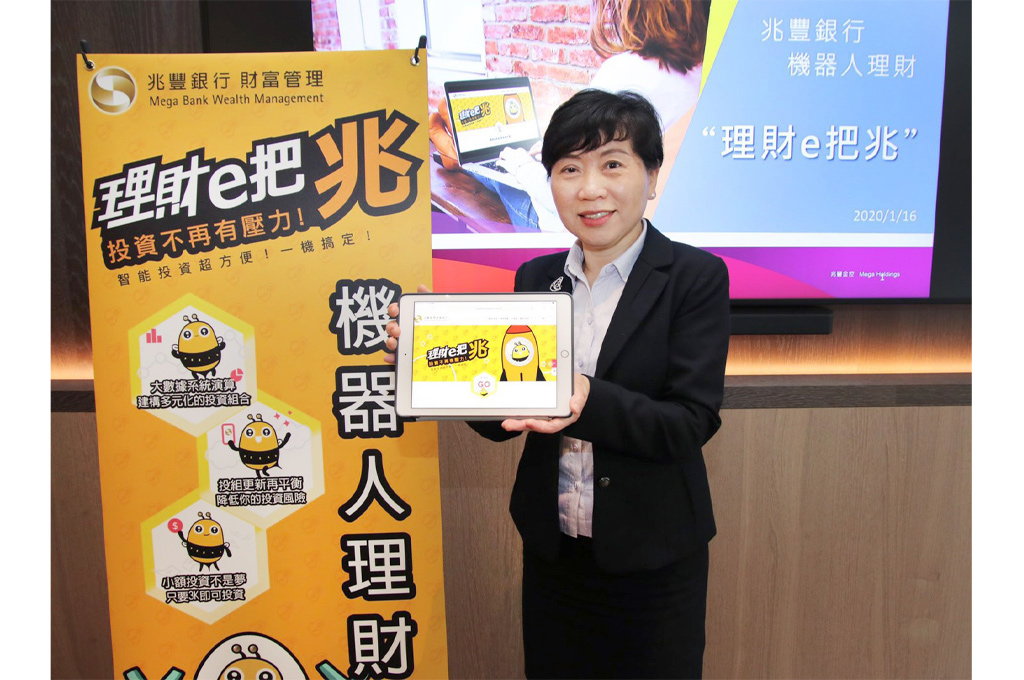 兆豐銀行為搶進數位金融服務市場,領先各大公股行庫,率先推出兆豐「理財e把兆」理財機器人,1/17上線後,16個小機器人開始擔負起理財重責大任,為投資人自動配置多元市場及多重資產投資組合,以達分散風險的效果,只要花幾分鐘告訴機器人投資偏好,就可以獲得最佳投資組合,輕鬆在線上下單完成交易,享受「懶人投資」、「無惱理財」的數位化服務,而且交易零手續費。