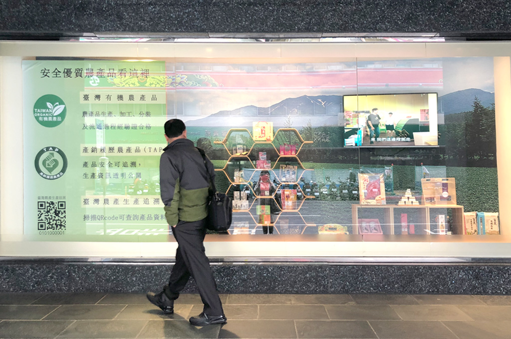 臺北車站前大樓林立的館前路上,有片偌大的櫥窗陳設臺灣各地有安全標示的農漁特產品,吸引路人駐足,這裡是臺灣農漁業發展的重要推手之一「全國農業金庫」。