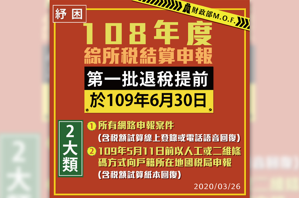 蘇貞昌說明,財政部有規劃「因應武漢肺炎防疫、紓困、振興」專案(詳情請上https://www.mof.gov.tw/covid19查詢),這時候繳稅可以退稅,立刻退稅有5百億;如果繳稅有困難,可申請延長、延緩一年或分36期繳納,「這是人民現在最需要的;如果計畫延宕、退稅不能辦理的話,5百億不能兌現非常可惜。」