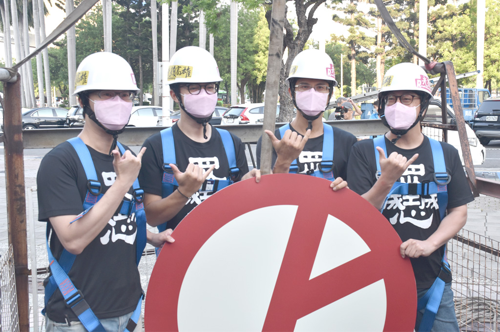在收到台北傳來令人振奮的消息後,罷韓四君子搭上吊車,四人同心協力將選舉圈選用印粘上光復高雄前,「同意罷免」韓國瑜的巨幅罷免票帆布上。四君子還一起在吊車上自拍,紀念台灣民主歷史性的一刻。