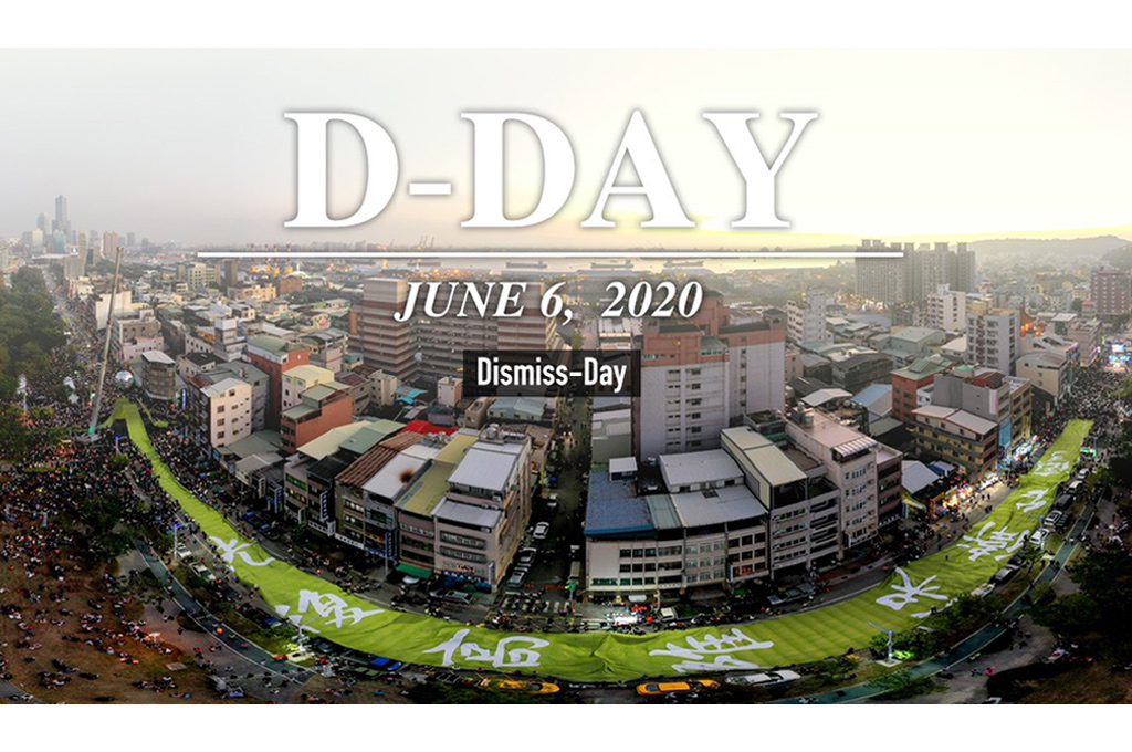 中央選舉委員會在今(17)天下午稍早,宣布審查通過高雄市長韓國瑜罷免案,並於6月6日禮拜六辦理投票。光復高雄對此宣布,高雄即刻進入50天民主搶灘,「6月6日將是高雄的D-Day,Dismiss罷免韓國瑜、高雄Democracy民主勝利」。