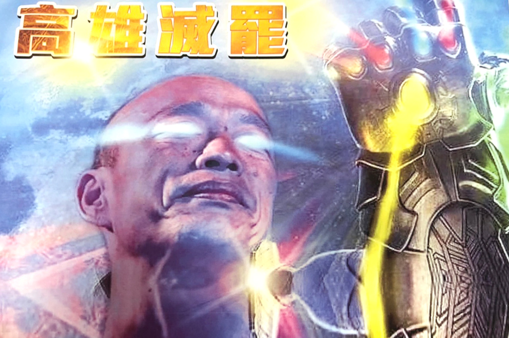 陳致中隨後拿出漫威漫畫中的「滅霸」手套,酸韓國瑜是「滅罷」,更打算將手套送給他當畢業禮物,卻遭韓國瑜當場拒收。