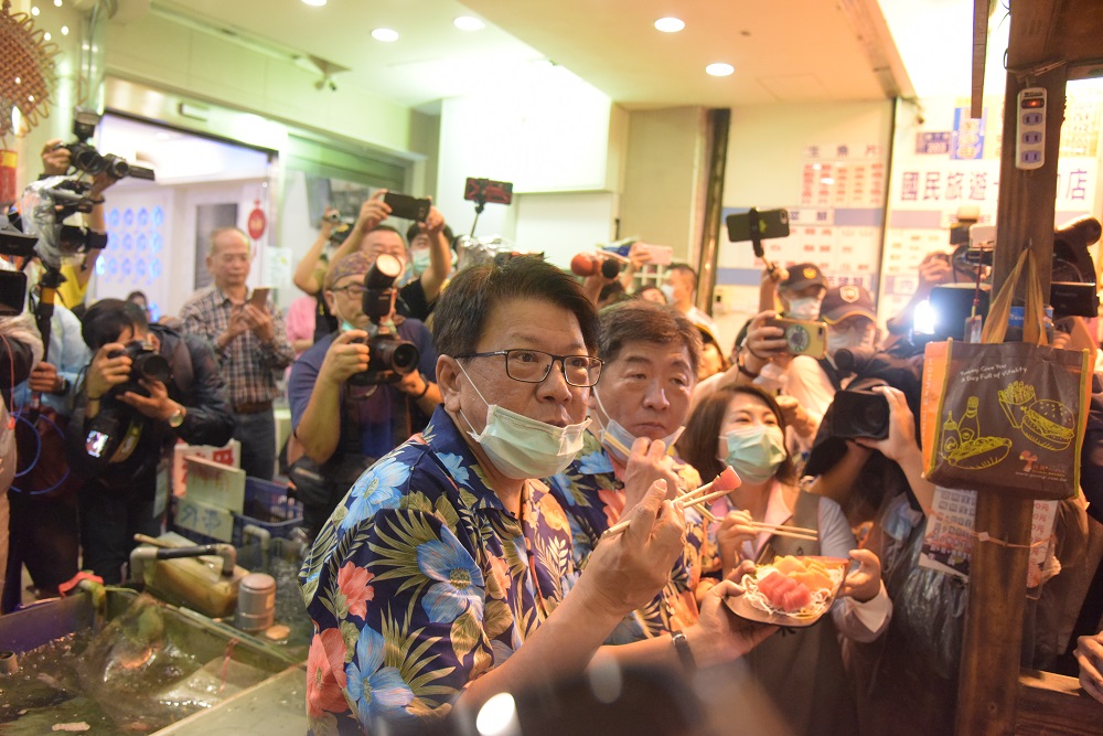 伴隨現場高喊「阿中部長我愛你!」中央流行疫情指揮中心指揮官陳時中今(23日)率領防疫團隊,來到國境之南-屏東墾丁大街逛夜市,示範樂活防疫新生活。屏東縣長潘孟安表示,近日大家都看到在防疫記者會中,陳時中提出想要「穿木屐」體驗逛夜市,因此在地業者特別訂製一雙送給陳時中,表達對防疫團隊的感謝,以及為台灣零確診繼續加油!