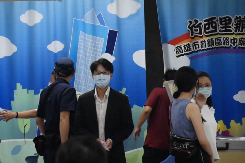 陳冠榮所屬的前鎮區竹西里投開票所,一早還沒到投票時間就已經出現兩排長長的人龍,陳冠榮在依序排隊後,在眾目睽睽之下,將近10分鐘後完成投票。