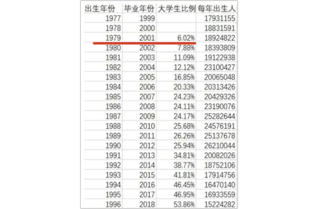 而第三個數字是,李克強提到今年大學畢業生將高達874萬人,這對已經緊張的就業市場來說顯得更為嚴峻,因為中國也普遍面臨學歷貶值的問題,中國從2001年到2018年,具有大學學歷的畢業生,已經從6.02%拉高到近54%,等於每兩人就有一個具有大學學歷,學歷的貶值化與大學畢業生可能出現「高不成低不就」的社會現象將更嚴重影響就業市場。