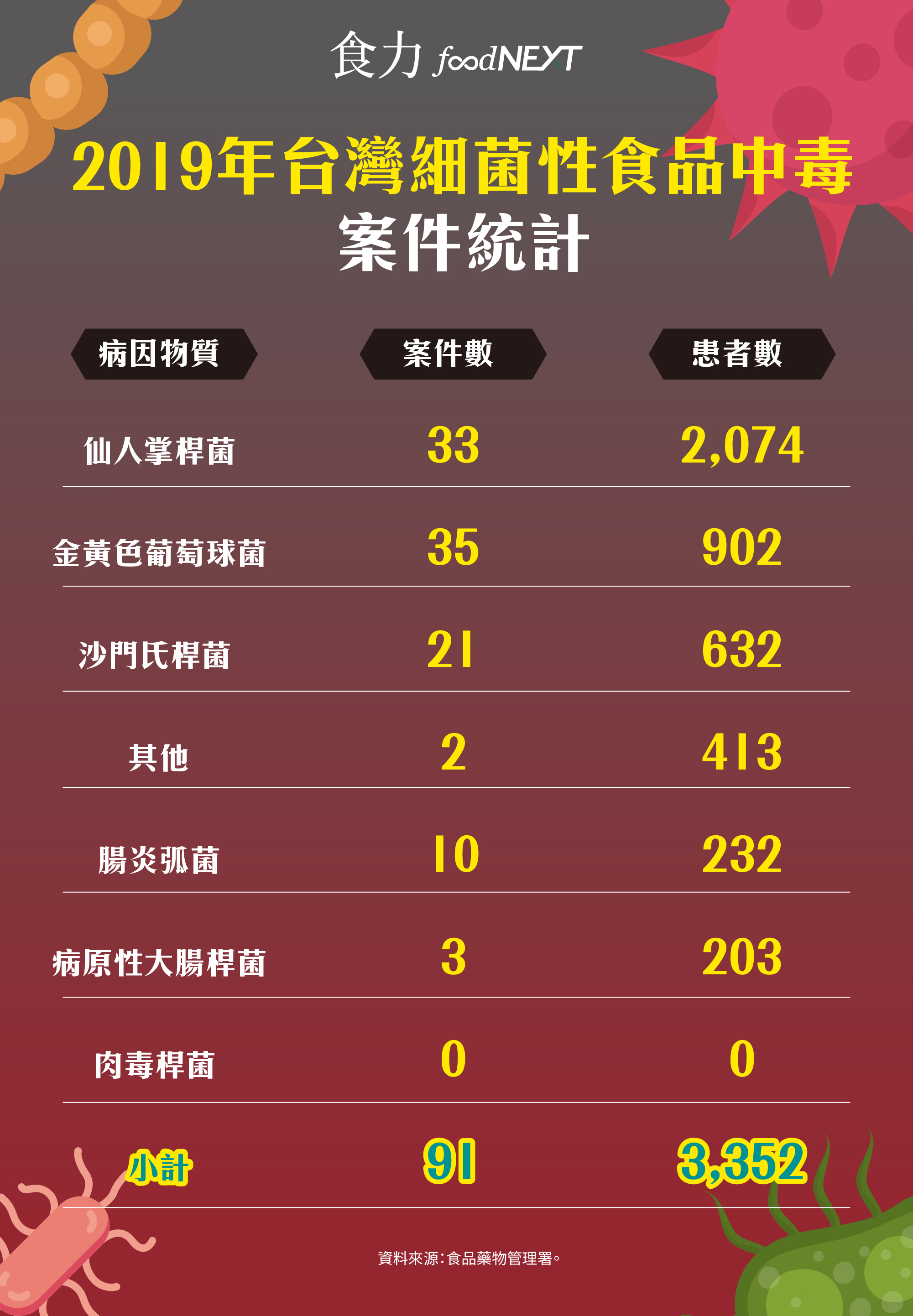 而在台灣,除了發生過多起沙門氏桿菌所導致的食品中毒事件,更有學生因食用早餐店裹上生蛋液但未充分加熱的吐司而致死的憾事。2019年,根據食品藥物管理署的「食品中毒案件病因物質分類統計」,沙門氏桿菌更在細菌病因類別中,排名第三名。