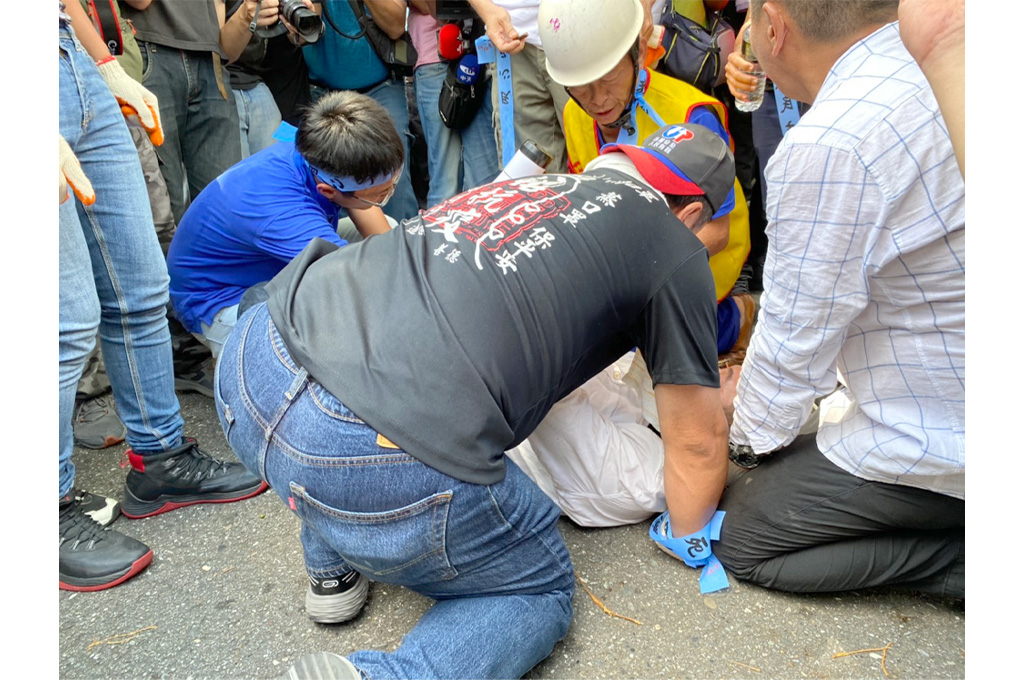 該名民眾倒地原因不明,但無明顯外傷,現場立刻呼叫救護車,將倒地民眾抬到空曠處,但3分鐘不到、在救護車抵達現場行前,倒地的抗議者就自行起身,快步返回群賢樓前的抗議現場。破壞拒馬的行動也在民眾倒地的意外插曲後停止。