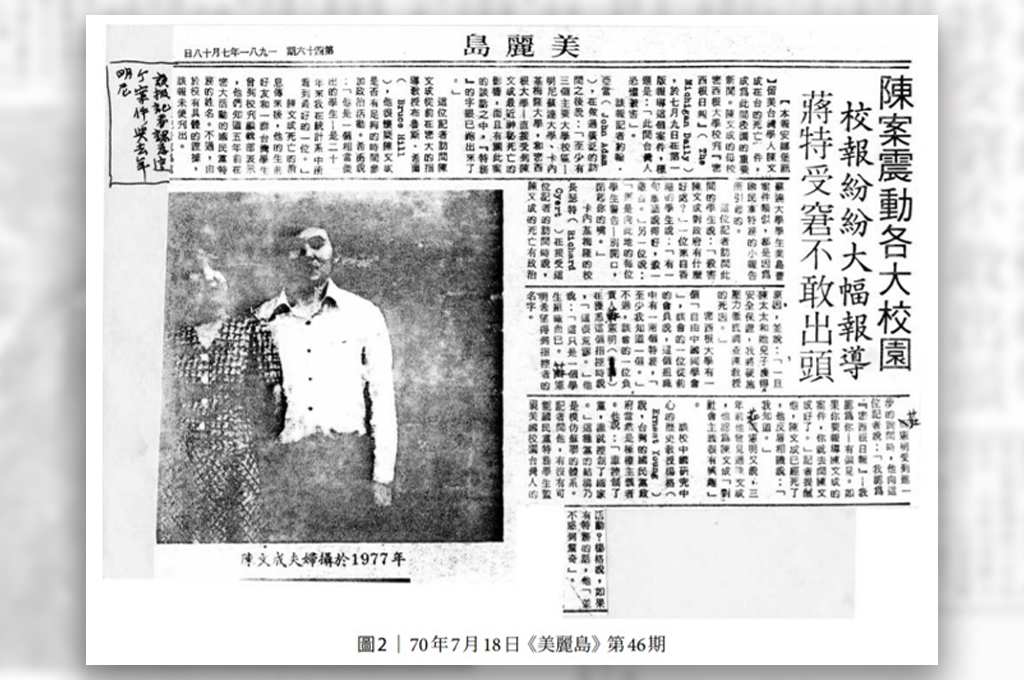 民國70年7月3日上午,旅美學人陳文成被發現陳屍台大校園。由於陳文成7月2日上午被警總帶走約談後一夜未歸、音訊全無,再加上屍體的姿勢怪異、衣著凌亂,陳文成的死訊引起臺灣社會廣泛重視。