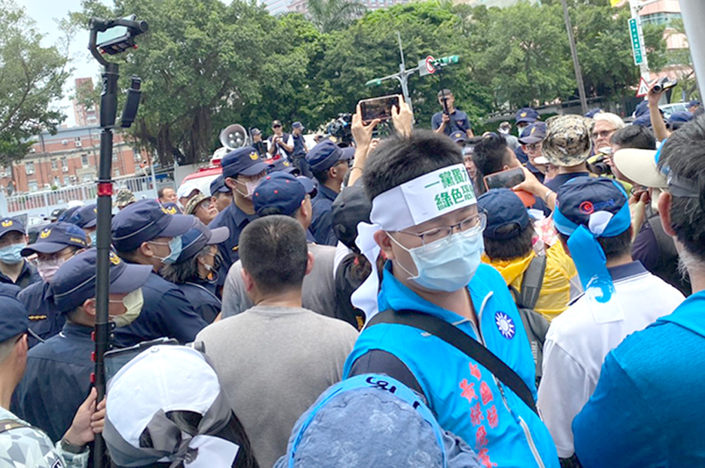 眼看場面僵持不下,議員陳偉杰出面呼籲支持者冷靜,等待國民黨與警方溝通,但部分支持者大為不滿,試圖衝撞警方,還有民眾拿著大聲公衝上戰車,想主導遊行,氣氛一度緊張。