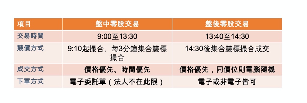 (圖說:盤中零股與現有的盤後零股交易比較 / 資料來源:證交所)