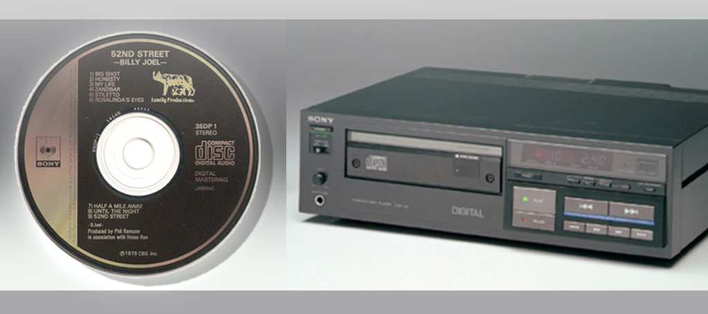 (全世界第一張商業發行CD及第一台CD播放機—Sony的CDP-101)