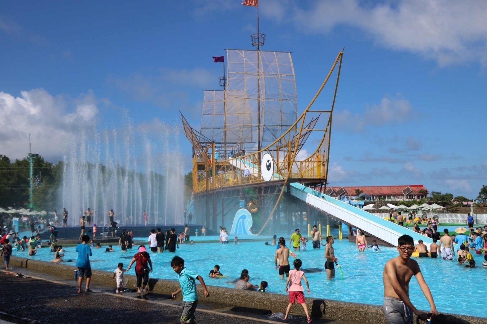 (圖片:橫跨三個水池的「飛魚海盜船」總長達85公尺,小孩期待、大人也難抗拒)