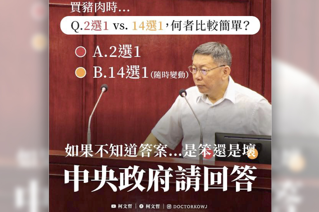 「第二問,2選1 VS. 14選1,何者比較簡單?」柯文哲問道,如果中央政府不知道答案,到底是「笨」還是「壞」?