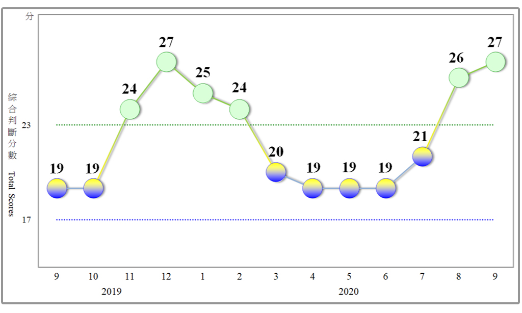 國發會日前公布9月最新景氣對策信號,綜合判斷分數為27分,較8月增加1分,景氣燈號已連續兩個月呈現綠燈;景氣領先指標連六個月走揚、累計升幅7.35%,可說是穩健回升,未來景氣領先指標是否持續回升,是觀察重點。景氣同時指標則連續四個月走升,累計升幅達3.4%,反應國內經濟逐漸趨穩。