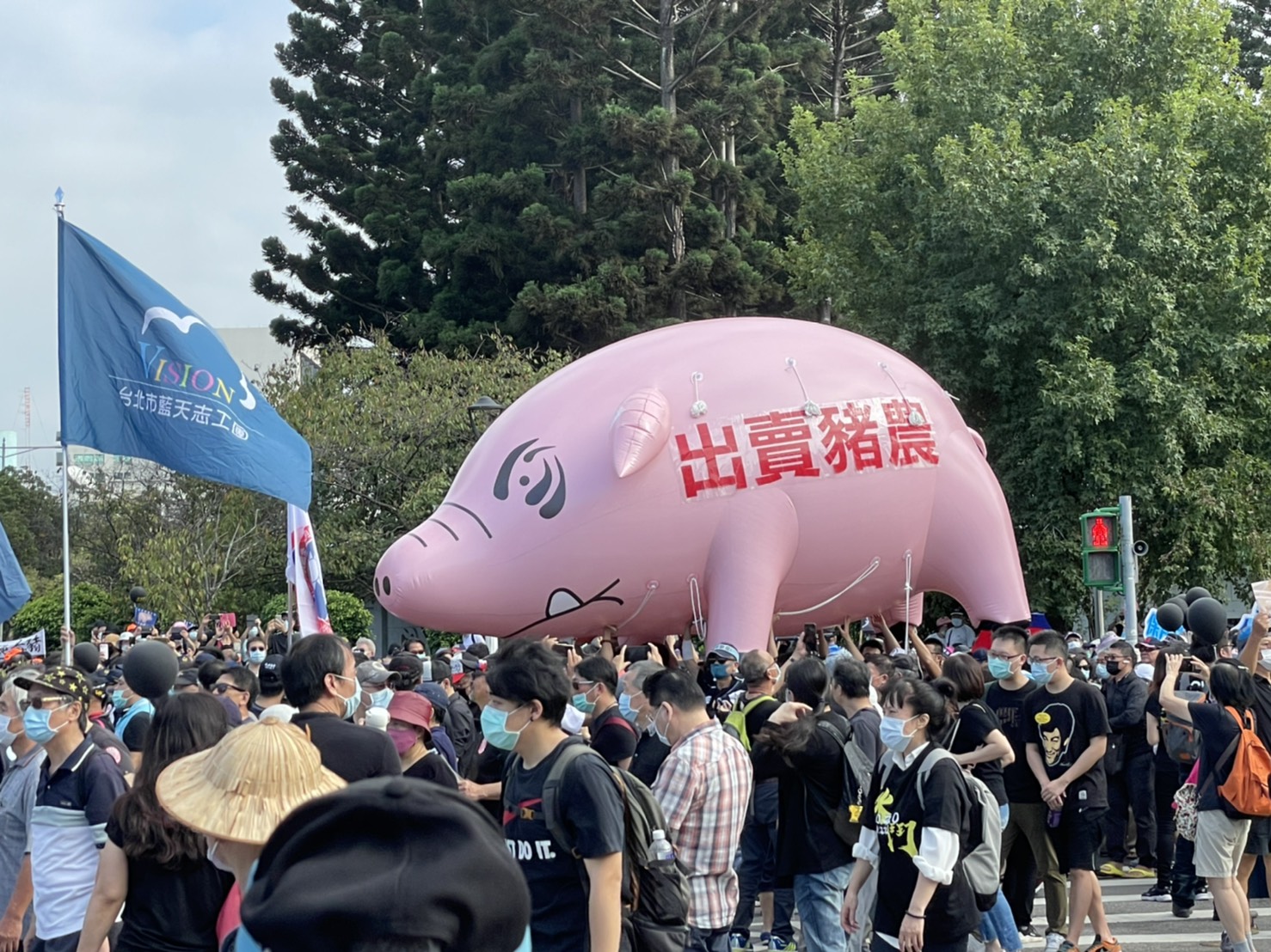 國民黨目前仍在遊行中,路線從凱達格蘭大道行經公園路、常德街、中山南路、立法院、行政院、北平東路,最後到達民進黨部。他們的兩隻大型氣球豬也隨行,參與民眾不停拍照紀念。