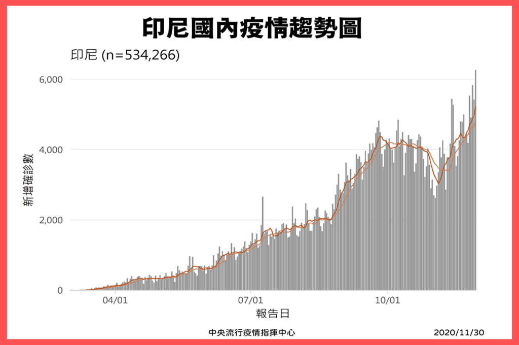 指揮官陳時中說明,印尼的國內疫情持續升高中,指揮中心認為,不館是在移工的集中訓練場所或是相關防疫措施,並沒有做得很完善,加上提出來的陰性報告跟真實情況有落差,決定針對印尼入境我國嚴加管制。陳時中指出,會選12月4日是因為有些移工已經辦好手續,安排好集中檢疫場所、買機票等,這些人還是會讓他們進來。
