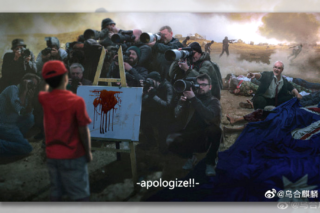 澳大利亞和中國之間的展開圖戰。中國外交部發言人趙立堅在「推特」貼出自稱「戰狼畫手」烏合麒麟的作品,澳洲軍人持刀架在阿富汗男童脖子上的圖片,經澳方要求仍不刪文還置頂;澳洲每日電訊報後來以六四事件在天安門廣場坦克人「真實照片」回擊;烏合麒麟又貼出最新創作「致莫里森」,點名澳洲總理莫里森(Scott Morrison)道歉。