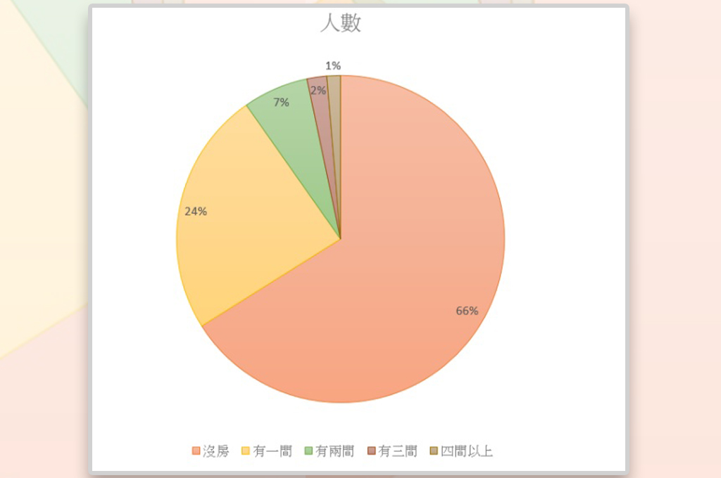因此,政治上的判斷往往是依據現實的統計結果而來,以央行近日推動的「四大打炒房措施」為例,其中一般民眾(自然人)第三戶以上購屋貸款只能貸到六成,為何是針對第三戶以上的購屋做限制?根據統計,台灣人口約為2356萬人,其中持有一戶者為569.7萬人,持有兩戶者為152.2萬人,持有三戶者為45.8萬人。持有四戶以上者約31.6萬人,圖示如下:
