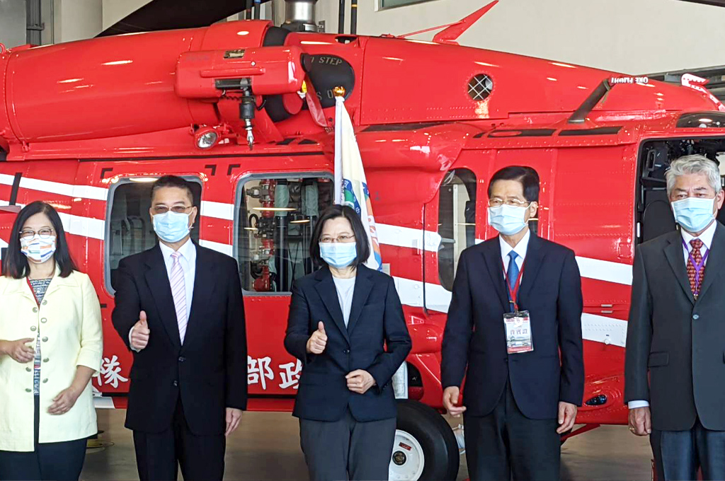 徐國勇今日陪同蔡英文總統出席「空勤總隊黑鷹機隊復編暨廳舍棚廠落成啟用典禮」,精神奕奕。