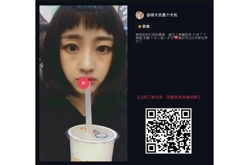 「@徐大坑是個大坑」網友推薦說:「給你們推薦一個特別好喝的都可的焦糖奶茶,加布丁加青稞無糖加冰缺一不可」,就這麼一句話讓都可在中國激烈的手搖茶市場中再度翻紅。(圖片來源:抖音影片截圖)