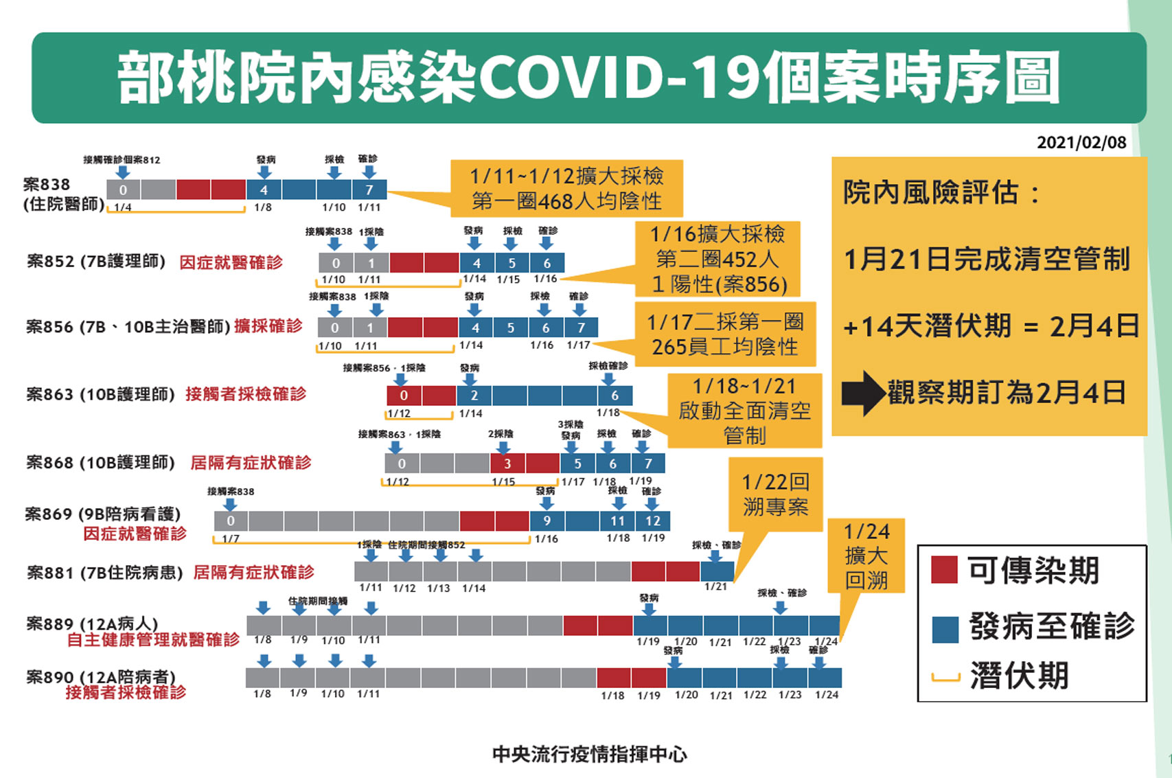 衛福部桃園醫院群聚感染武漢肺炎事件,共累計20人確診,其中1人死亡。中央流行疫情指揮中心指揮官陳時中昨日偕同桃園市長鄭文燦,宣布部桃感染危機解除,並於今(8)日公布「部桃事件結案報告」。指揮中心醫療應變組副組長羅一鈞表示,本次病毒傳播時間相當快,對指揮中心來說,疫調、匡列接觸者、採檢都極具挑戰。指揮中心也根據結案報告,未來將擬定SOP,以供未來其他醫院可以依循。
