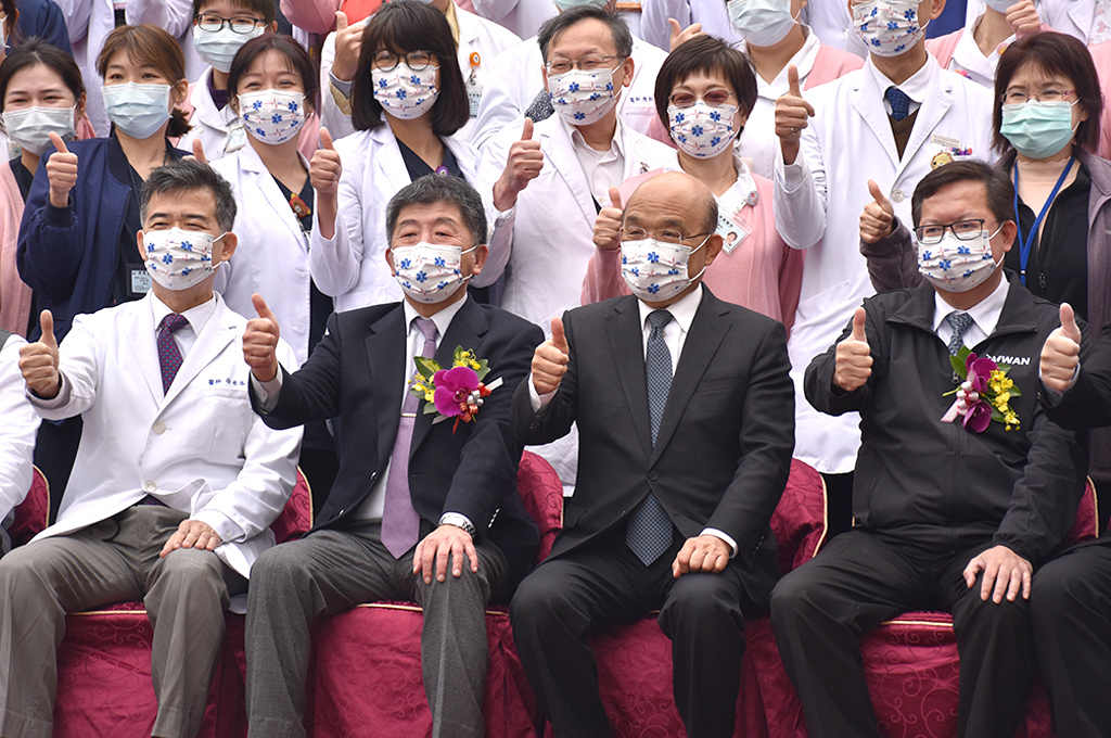 「非常感謝國人同胞大家齊心合力,我們可以看到部立桃園醫院能夠開放重啟,這都是第一線醫護人員非常的努力。」蘇貞昌指出,整個指揮中心應對得宜,鄭文燦率領市府團隊跟中央全力合作,國軍部隊更出動兵力來進行社區消毒,所以不但布置好了防火巷,也能夠把疫情做最好的控制隔離。