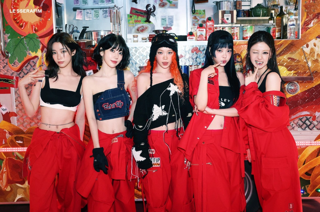 LE SSERAFIM 由 HYBE 旗下 SOURCE MUSIC 推出,團名源自「IM FEARLESS」的字母重組,象徵不被目光動搖、無懼前行的姿態。2022 年以首張迷你專輯《FEARLESS》出道,立刻刷新女團出道首日、首週銷量紀錄,被外界形容為「不同級別的女團」。她們的音樂不走全然甜美,也不單靠 Girl Crush,而是在迷幻、放克、R&B、拉丁節奏之間切換,打造不被定義的團體風格。